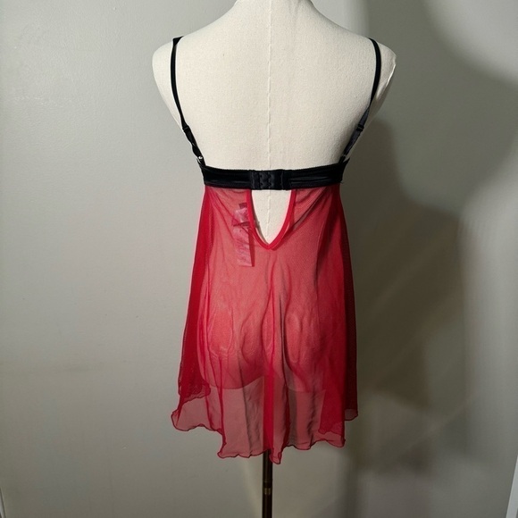 NWT BABYDOLL CHEMISE IN BLACK AND RED WITH LARGE SATIN RIBBON S