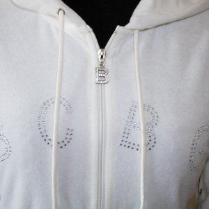 NWT stunning top with rhinestone logo front. Front zip closure with rhinestone B logo. Split kangaroo pockets with satin trim. Nice finish around the neckline with BCBG MAXAZRIA logo trim.