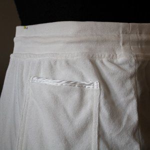 NWT stunning pants with the rhinestone logo on one leg. Ribbed waist with drawstring tie. Back pockets with satin trim.
