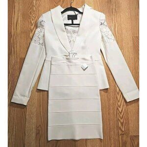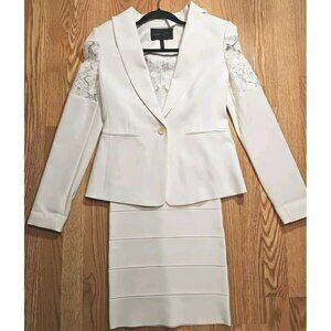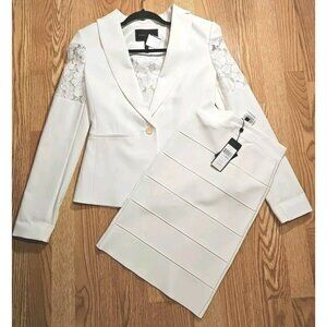 NWT BCBG Maxazria Skirt Suit Sz XS / S Ivory Lace Stretch Elastic Office Siren