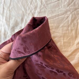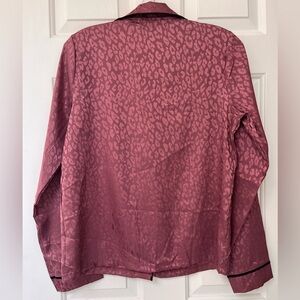 Elevate your loungewear or casual chic look with this luxe button-down top from BCBGMAXAZRIA. Made from a soft, satiny jacquard with a subtle tonal leopard print in a rich Deco Rose hue, it features contrast piping, a notched collar and long sleeves. Ideal as a pajama top or styled for daywear.