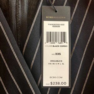 *NWT* BCBGMaxAzria Black Pinstripe Faux-Wrap Asymmetrical Belted Dress - XXS