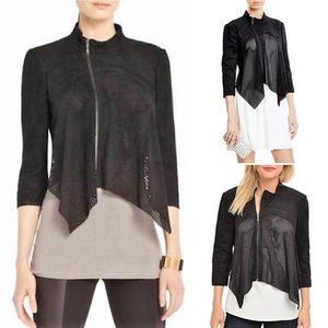 *NWT* BCBGMaxAzria "Bri" Laser-Cut Vegan Suede Zip-Front Semi-Crop Jacket - XXS