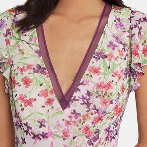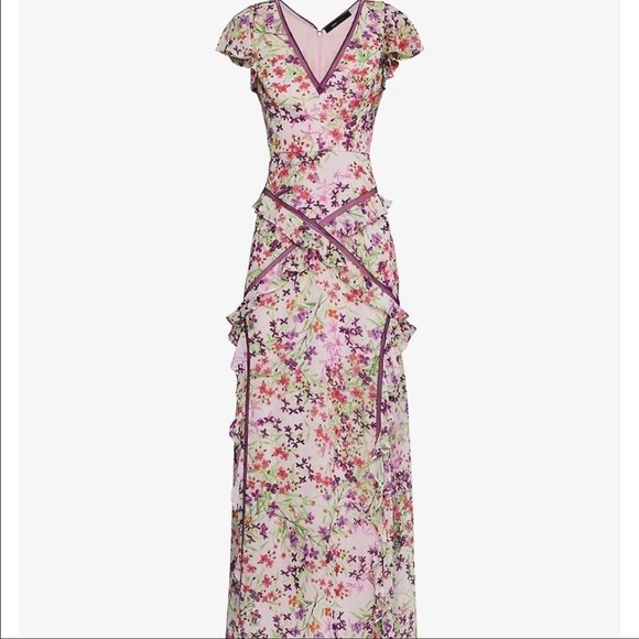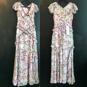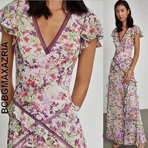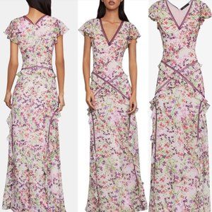 *NWT* BCBGMaxAzria Floral Ruffled V-Neck Gown with Short Flutter Sleeves *Size 0