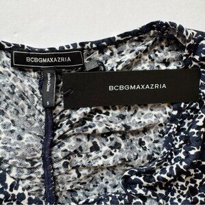 NWT BCBGMaxAzria Top Long Sleeve Ruched V Neck Blouse Shirt Animal Snake Sz S