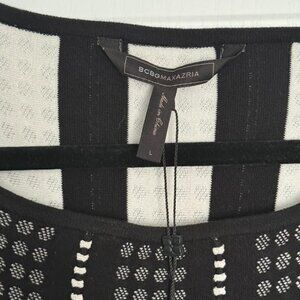 Elevate your wardrobe with this eye-catching BCBGMaxAzria dress, brand new with tags. Designed with a bold black and white geometric print, this piece blends modern sophistication with timeless elegance. This knit skater dress if flattering to all shapes and suitable for a variety of occasions.