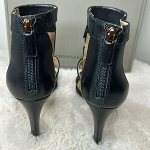 NWT BCGB Black Leather Heels with Fringe & Copper Embellishment