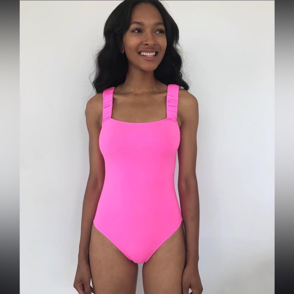 Dive into summer with this vibrant pink one-piece swimsuit. Perfect for beach days and poolside lounging.