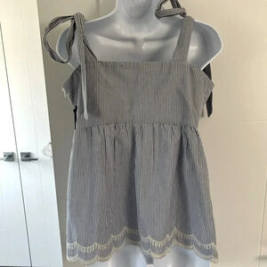 NWT BLACK TAPE_/ 100% cotton baby doll blouse/ White & blue stripes/ Size US L