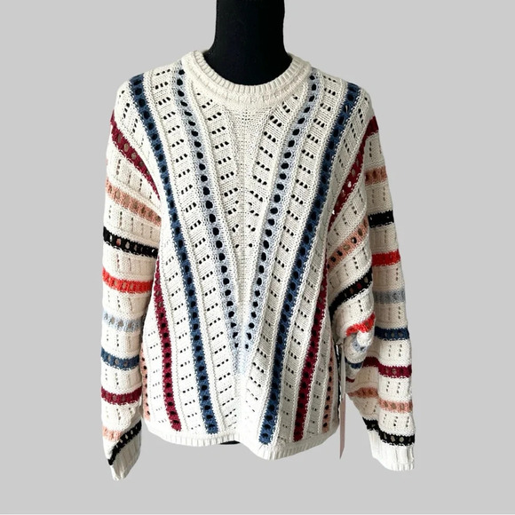 NWT BLACK TAPE CHEVRON STRIPES CROCHET SWEATER