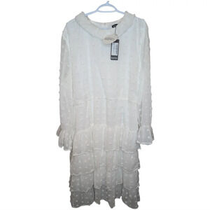 NWT BOOHOO Plus White Swiss Polka Dot Ruffle Tiered Midi Dress Size 20
