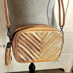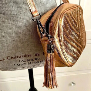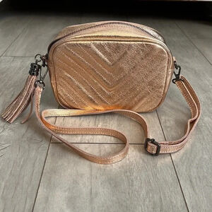NWT BORSE IN PELLE Rose Gold Metallic Crossbody Bag with Tassel Made in Italy