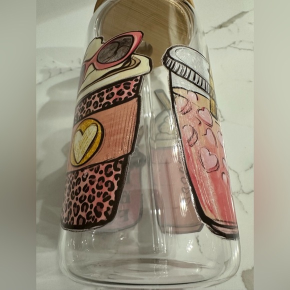 NWT beer can glass cup BOSS BABE design with glass straw, and bamboo lid 16 oz