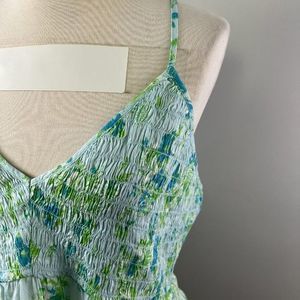 NWT BP Floral Smocked Crop Camisole, Blue Sina Sketched Floral (1X) 5:63