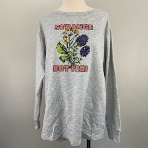 NWT BP Grey Crew Neck Strange But True Floral Long Sleeve Shirt (M)