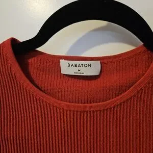 "This is a cropped racerback tank with a crew neckline and fully fashioned construction. It’s made with Sculpt Knit — Babaton’s signature figure-smoothing yarn. The perfect amount of stretch hugs in the right places to shape and sculpt your form. It’s constructed using an Ottoman stitch with close distinct ribs for a structured and textural feel."