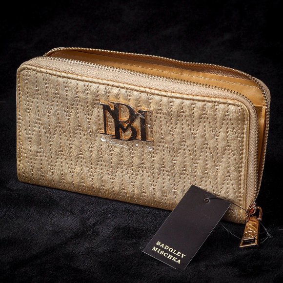NWT Badgley Mischka | Metallic Gold Braid Quilted Long Wallet