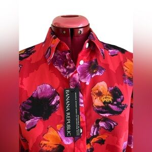 NWT Banana Republic Dillon blouse, long sleeve button up, vibrant, poppy pattern