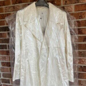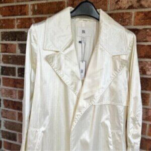 NWT! Banana Republic Maja Satin Trench Coat Iced Vanilla Ivory - Size Petite L