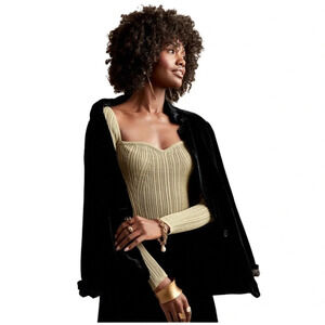 NWT Banana Republic Metallic Gold Sweetheart Knit Sweater Top Size Medium