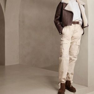 NWT Banana Republic Sierra Moleskin Cargo Pants, Cream/White, Petite 0-2