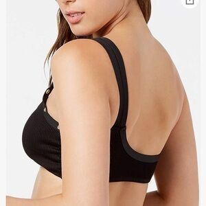 NWT Bar III Black Ribbed Grommet One Shoulder Bikini Swim Top