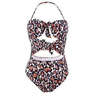 NWT Bar III leopard print tie front cut out one piece swimsuit