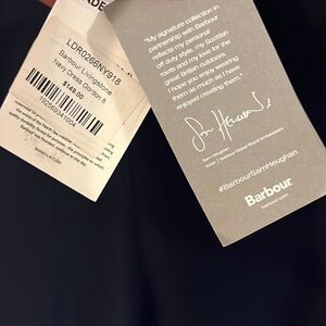 New with tag navy dress from the Barbour x Sam Heughan signature collection. Features: body skimming fit in a comfortable jersey knit fabric; v-neck; ¾ length sleeves; midi length. Retailed for $149 USD.