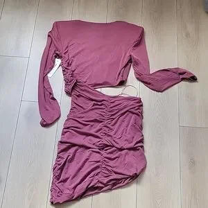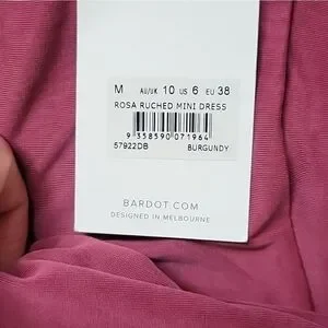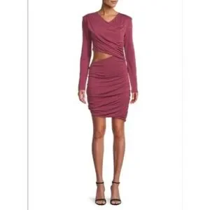 The `Rosa’ dress by Bardot is a figure-flattering mini with structured shoulders and ruching down the sides. The wrap-style bodice is met with a triangular cutout at the side, which complements the asymmetrical hem. Style with a pair of heels and a clutch for the perfect night-out outfit.