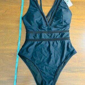 NWT! Beachsissi - Black Mesh Patchwork One Piece - Size M