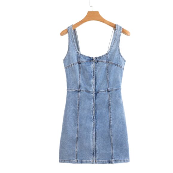 ๐ NWT Beau Blue Seamed Zipper Denim Mini Dress โ Size M