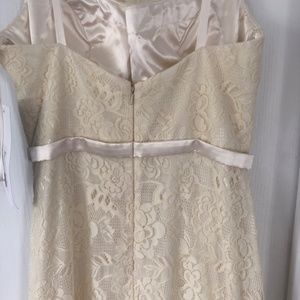 Gorgeous simplicity of ivory lace and satin A-line dress with slight train. Size 10. PTP 18". NWT retail $207.