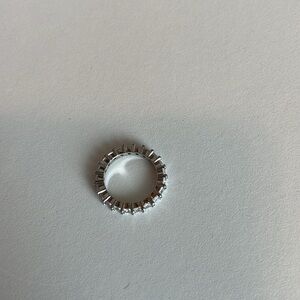 Brand new, silver colour cubic zirconia and stainless steel wedding band,