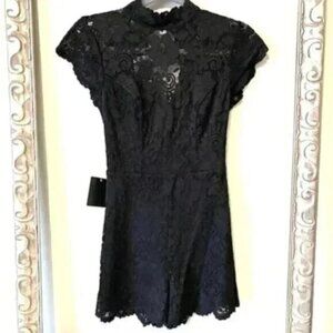 NWT Bebe Lace Romper Open Back High Mock Neck Sweetheart Underlay