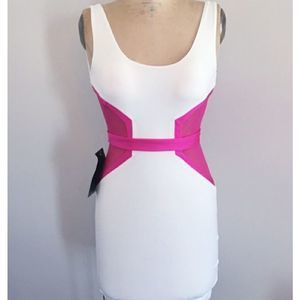 NWT ๐๐๐Bebe Neon Spandex Panel White Slim Dress Size S