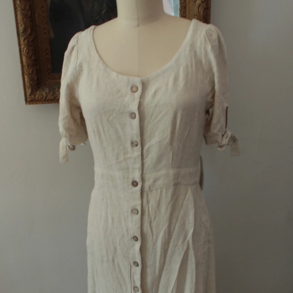 NWT Beige Linen Hayden LA Coconut Button Front Dress