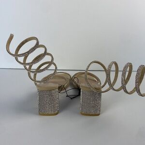 NWT Beige tan cream block heel rhinestone bejewelled ankle wrap heels size 6