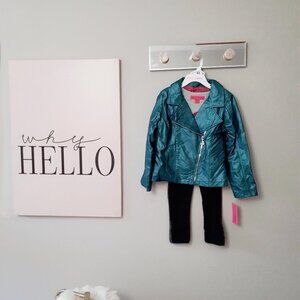 NWT Betsey Johnson faux leather jacket, long sleeve t-shirt & leggings bundle