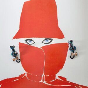 NWT Betsey Johnson rhinestone cat bow accented drop dangle earrings