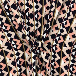 Discover elegance with this sleeveless blouse featuring a striking geometric design. Perfect for adding a touch of sophistication to your wardrobe.