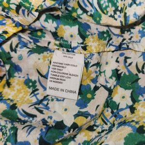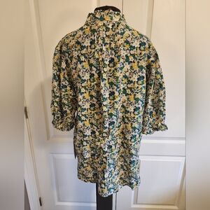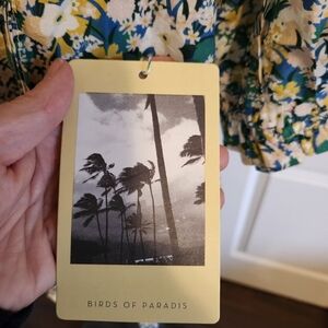 NWT Birds of Paradis by Trovata short sleeve floral blouse. Lots of beautiful colors making it very versatile. Size large. Elastic armbands to fit most. 70% cotton, 30% silk.