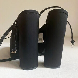 NWT Black Chunky Platform Nylon Ankle Wrap Closure heels 40