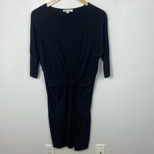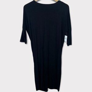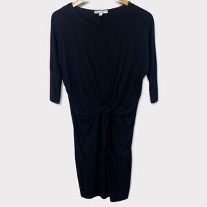 Spencer + Shaw 3/4 Length Sleeve Tie Front Dress in Black and Women's Size Large. Crew neckline. Rayon and spandex. Note the model photo is for the cap sleeve version of the same dress in red. This one is black and has 3/4 length sleeves. Brand new with tags! No flaws.