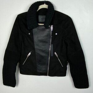 NWT Blank NYC Suede Leather + Cable Knit Moto Biker Jacket Black New With Tags S