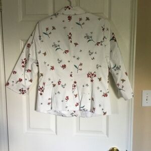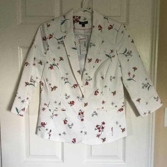 NWT two pocket, fully lined, back slit, slightly padded shoulder, 3/4 sleeves, white floral blazer.