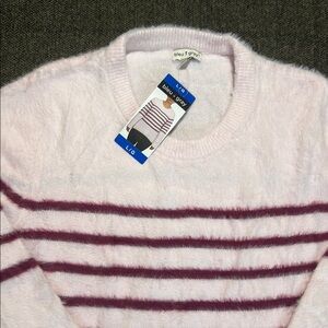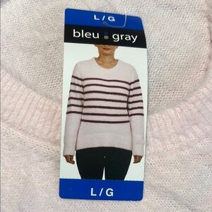NWT Bleu Gray Soft Fuzzy Pink Striped Sweater sz L