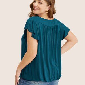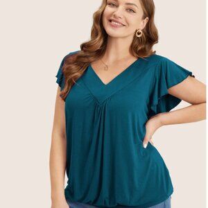 Stylish short sleeve top. Features a V-neck design. Perfect for casual wear.