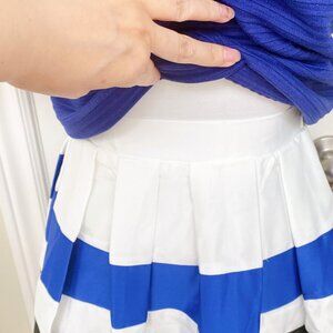 NWT Blue Knitted Blouse Top and Blue White Black Stripes skater Skirt Dress Set