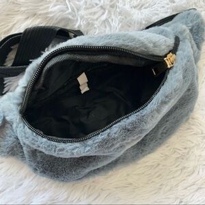 NWT Blue Plush Waist Bag Fluffy Fanny Pack Crossbody Travel Pouch