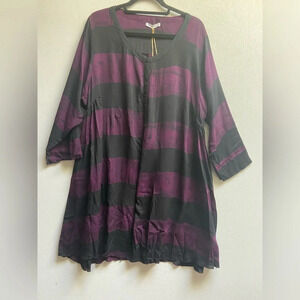 NWT Blue Sky Clothing Sylvia button Tunic purple black dress 3/4 sleeve Sz 1X